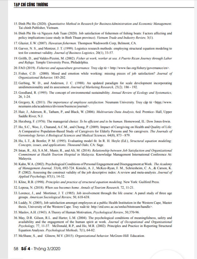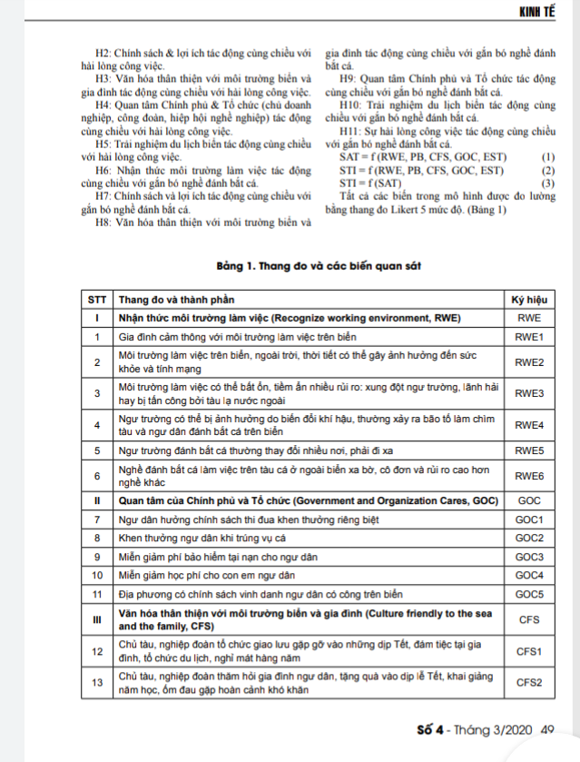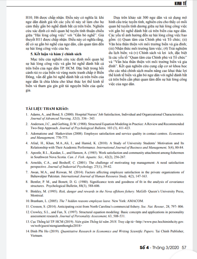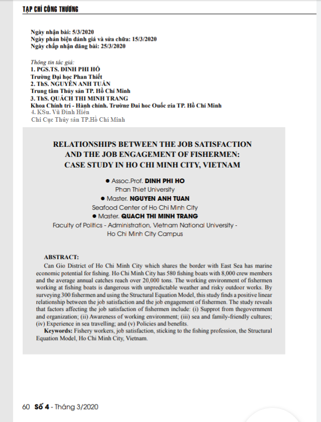 CÁC YẾU TỐ ẢNH HƯỞNG ĐẾN SỰ GẮN BÓ NGHỀ ĐÁNH BẮT TRÊN BIỂN CỦA NGƯ DÂN TÀU CÁ THÀNH PHỐ HỒ CHÍ MINH (CẦN GIỜ)