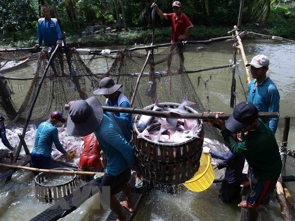 | Thu hoạch cá tra phục vụ chế biến xuất khẩu. (Ảnh: Vũ Sinh/TTXVN) |