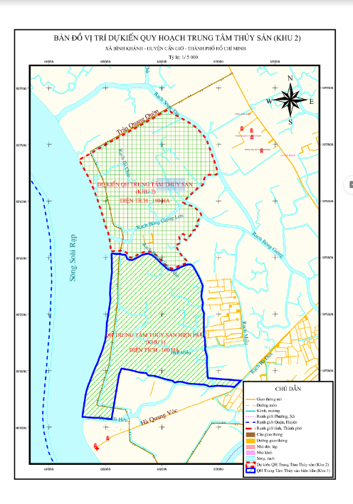 Được UBND huyện Cần Giờ phê duyệt Đồ án quy hoạch chi tiết xây dựng tỷ lệ 1/500 Dự án đầu tư xây dựng hạ tầng khu chế biến thủy sản và cơ sở dịch vụ hậu cần nghề cá thuộc Trung tâm Thủy sản thành phố tại xã Bình Khánh, huyện Cần Giờ (Quyết định số 1255/QĐUBND ngày 24/12/2014, tổng diện tích: 79,96 ha).